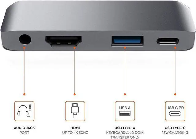 USB C HDMI Adapter for MacBook Pro 2017/2016/Google Chromebook /XPS/S9, 4 in 1 USB-C to 4K HDMI Output, Audio Jack Port, PD Charging Port and USB 3.0 Port (Space gray)