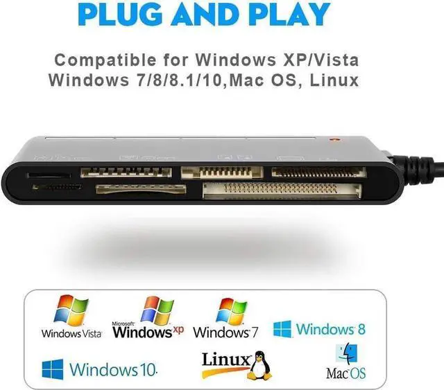 · Wide compatibility of memory cards - 5 card slots for XD CF, SD, MS, TF. Read&write simultaneously. A time saver for home/office