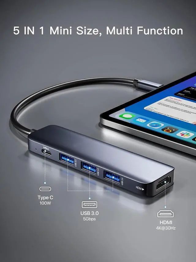 USB C Hub 3.0 with HDMI 4K, 100W PD, 3*USB 3.0 (5Gbps), 5 in 1 USB C to HDMI Hub Docking Station for MacBook Air/Pro, iPad Pro, Mac