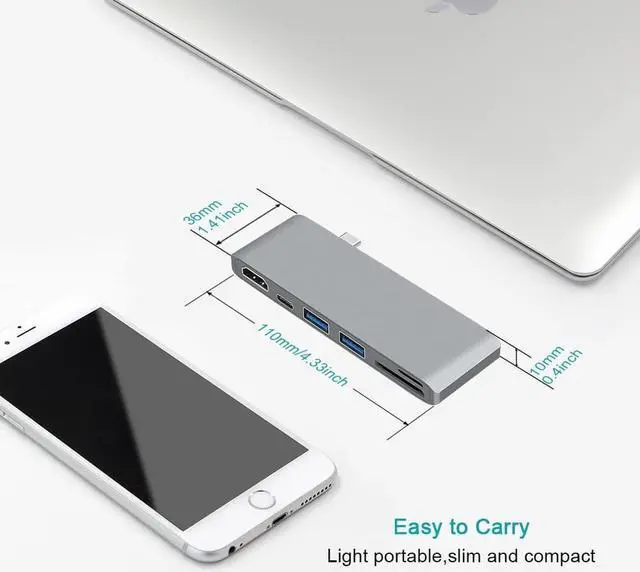 6 in 1 Thunderbolt to USB C Hubs Adapter can support high speed data transmission,pass-through charging,microSD / SD card reader,and have two USB 3.0 extension ports.