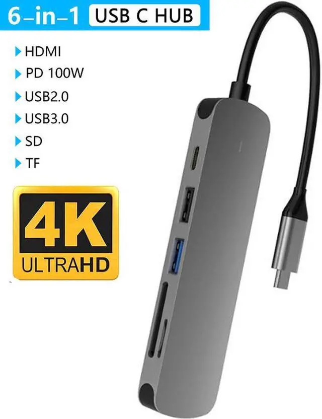 USB C Hub, MacBook Pro Adapter USB C Dongle, 6 in 1 USB C to HDMI Multiport Adapter Compatible for USB C Laptops Nintendo and Other Type C Devices (4K HDMI USB 3.0 / 2.0 SD/TF Card Reader 87W PD)