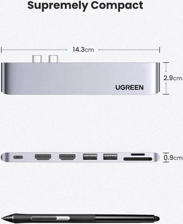 An Exclusive C Hub for MacBook Pro & Air: Ultra Slim USB C Hub is tailored for Macbook Air 2020, 13" and 15" MacBook Air 2018/2019, MacBook Pro 2020/2019/2018/2017/2016. UGREEN USB-C hub with a sleek aluminum finish perfectly blend in with MacBook. And all hub ports can work simultaneously, small yet mighty.