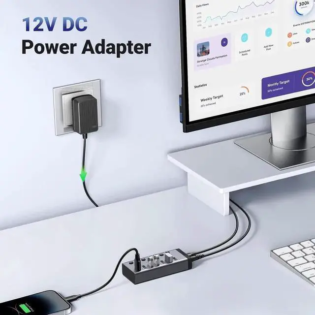 • 7 Ports USB 3.0 Hub: UGREEN 7 in 1 Power USB 3.0 Hub is equipped with 7 high-speed USB 3.0 ports. You can easily extend multiple USB devices for your laptop or PC such as a keyboard, mouse, U-Disk, printer, card reader, hard disk, camera, speaker, and more.