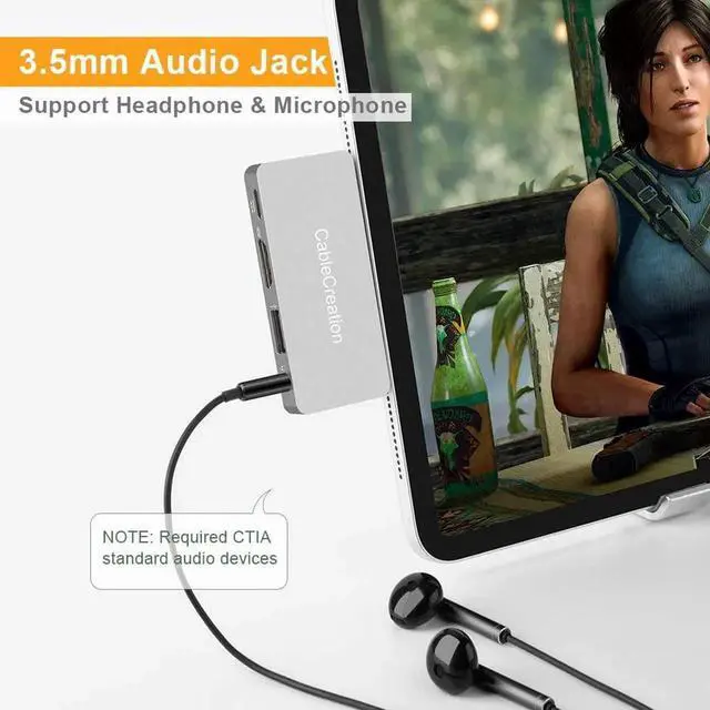 100W PD Charging & 5Gbps data rateCablCreation iPad Pro adapter support up to 100W PD power supply, you can use and charge your iPad Pro at the same time; USB 3.0 support max 7.5W (5V/ 1.5A ) downstream charging; Support up to 480Mbps data transfer and connect portable hard drive, USB disk, keyboard, mouse via the USB 2.0 port.
