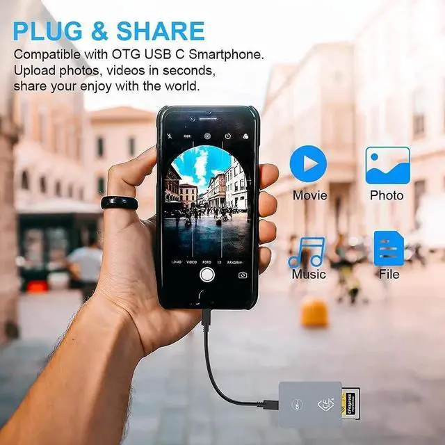 Portable and Compact & Designed for Travel PhotographyTravel photography light, cf express card reader baby palm size, easy to put in pockets and school bags, work at any time in the outdoors, mountain tops and other places, let photography become a pleasure.