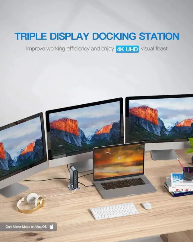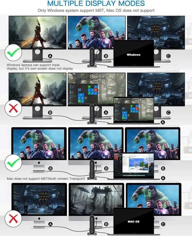 Note: MacOS DOES NOT support MST mode, all 3 display peripherals will mirror the desktop interface