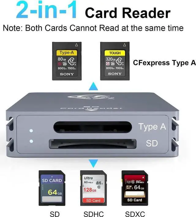 SD Card CompatibilityNot only compatible with CFexpress Type A Card, but also work with SD, SDXC, SDHC, UHS-I Cards for your convenience. Plug & play, hot-swapping capability, easy and convenient to carry and use for photographer and videographer.