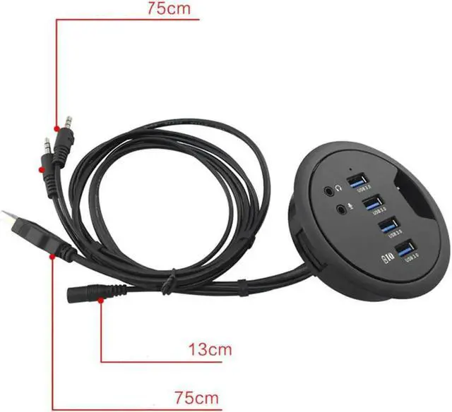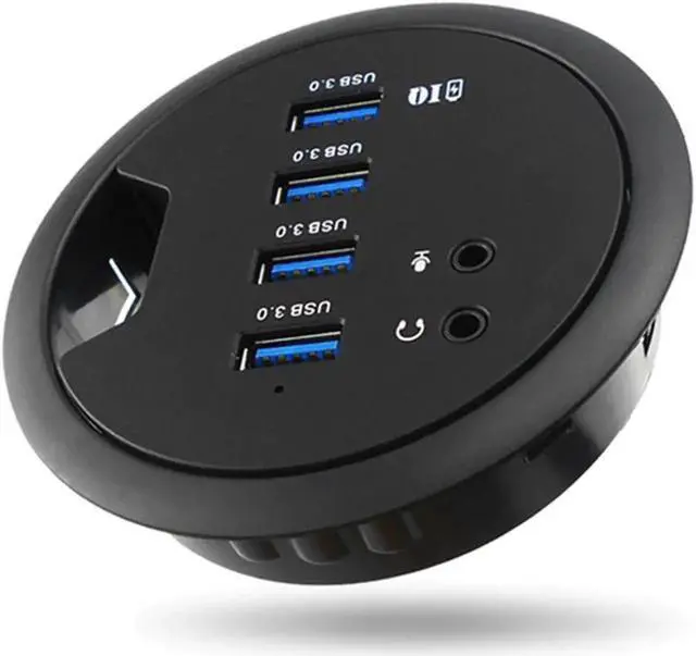 In Desk 4-Port USB 3.0 HUB Adapter and External Stereo Sound Adapter Combo