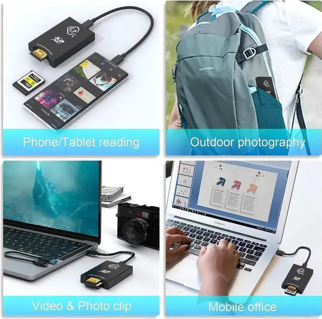 Super CompatibilityCFexpress B card reader compatible with CFexpress Card (Type-B) and UHS-II Card (Backwards compatible with UHS-I and SDXC/SDHC/SD cards). CF Express cards type b reader Compatible with Android, Windows XP/Vista/7/8/ 8.1 /10, Mac OS X, Mac Air, computer, PC, laptop etc. CFexpress Reader Supports NTFS/EXT4/FAT32/EXFAT disk format