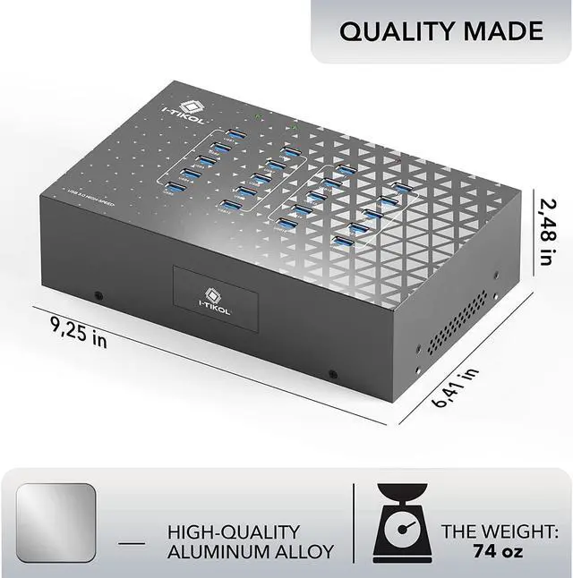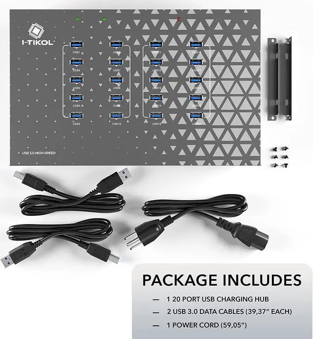 20 PORTS FOR HOME & OFFICE this Charging Station for Multiple Devices allows you to charge up to 20 Devices simultaneously, with a Speed of up to 5120mbpc / 5.12GB. Industrial Grade Powered USB Hub is equipped with a Power Switch, an internal blue Light, and LED Indicators. Mounting Brackets supplied with the USB Port Hub provides an opportunity to mount the USB Dock on any Wall, Table, or Server Rack.