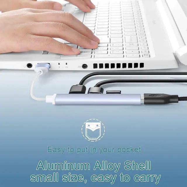 USB hub all-aluminum body. Fine craftsmanship, Rugged metal housing protects against breakage and is more durable than plastic.