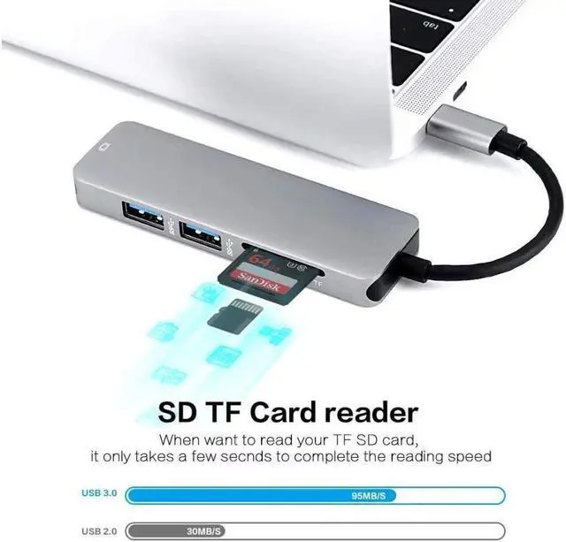 USB-C to HDMI with 2 USB 3.0 ports & SD/TF card reader adapter for all new MacBook/MacBook Pro /2016/2017/2018