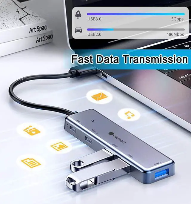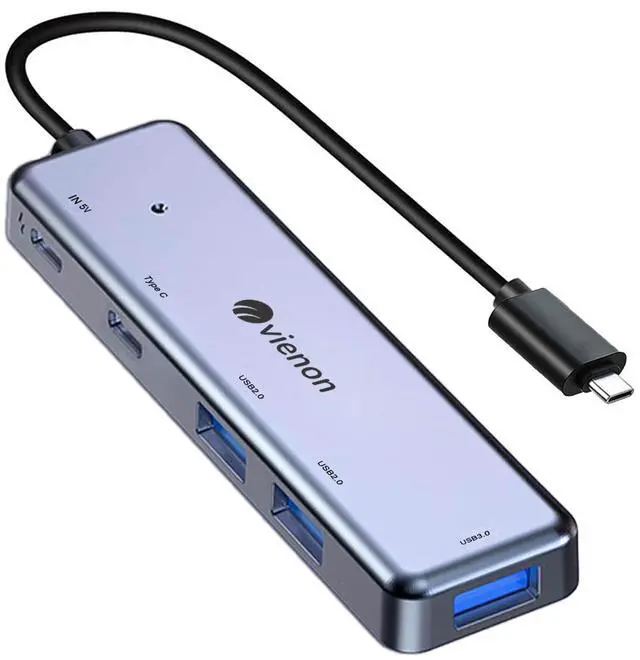 VIENON USB C Hub, USB C to USB A Adapter, USB C Dongle, USB C Multiport Adapter with 1 x USB 3.0, 2 x USB 2.0, 1 x USB C Data and 1 x 5V USB C Power Port for Macbook Mac Pro, iMac, Surface, XPS, Flash Drive, Mobile HDD and More Laptop/Tablet/Phone