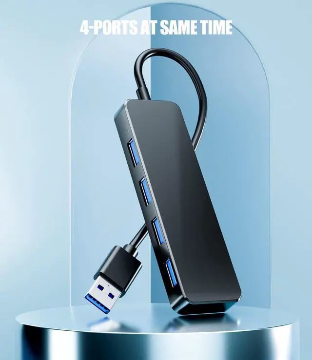 With high efficient USB3.0, 4-port USB splitter provides 5 Gbps stable data transfer and is compatible with 2.0/1.0. It is fast enough to transfer an HD movie in seconds.