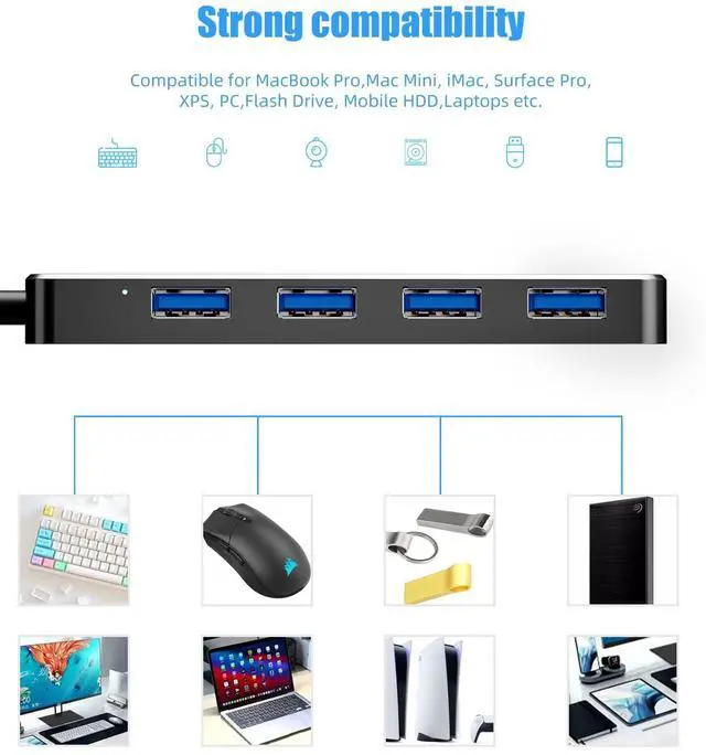 Multi usb port applies to various devices: laptop, pc, flash drive, keyboard, mouse, HDD, XBOX, PS4, cellphone OTG adapter, printer, camera, USB fan and USB cables.