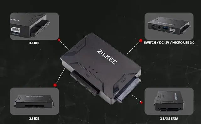 Zilkee external hard drive adapter supports up to 6 terabytes of data retrieval! The device itself is not a hard drive, and does not have storage capacity. With the ultimate hard drive reader, you can quickly transfer and back up large files from your hard drive to a new device with no compatibility issues. Enjoy peace of mind knowing that your precious data is secure. Zilkee Ultra Recovery Converter and IDE to USB Adapter uses the latest USB 3.0 technology to provide speeds up to 5 Gbps, making it the fastest SATA to USB adapter on the market! Transfer large files in no time and make the most of your time. The Zilkee Hard Drive Reader is the only device you'll ever need! With no driver installation and plug-and-play technology, you can quickly and easily access your hard drive data. The USB to SATA adapter is also compatible with Windows 10 / 8.1 / 8 / 7 / Vista / XP, MAC, and LINUX operating systems. Zilkee is committed to providing exceptional customer service. Enjoy a 1-year hassle-free replacement warranty and lifetime technical support for your hard drive to USB adapter. Get the peace of mind you need with the ultimate hard drive reader.