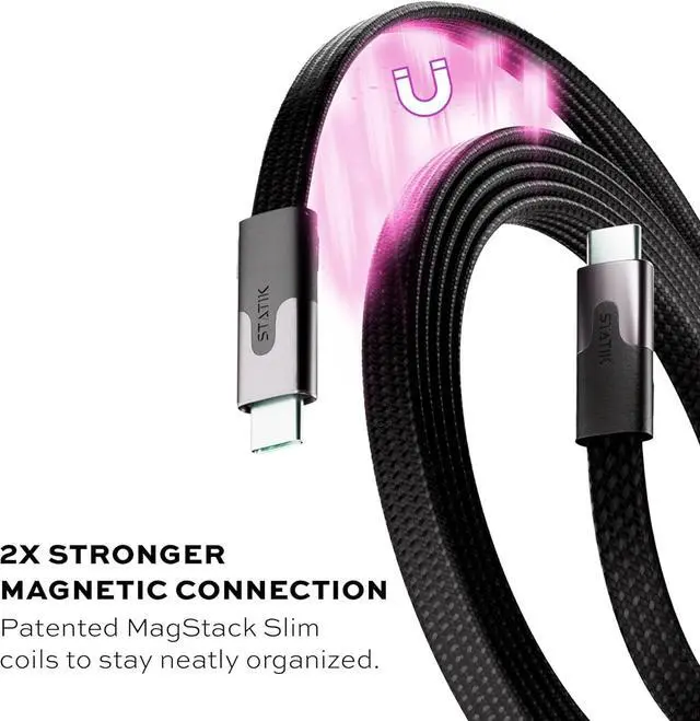 Anti-Tangle Magnetic Charger Cable: With Magnets integrated throughout the cable, the MagStack Slim Pro uses Patented Technology to make organization quick and easy. Our unique magnetic cable is stronger and more reliable than other imitators. Note: once the cable is straightened through use, it must be recoiled again and does not snap back into place by itself.