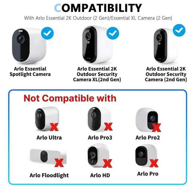 Compatibility:Arlo Essential 2K Outdoor (2 Gen)/Essential XL Camera (2 Gen)/Essential Spotlight