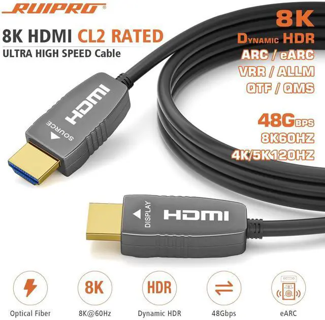 Ultra High Speed 48gbps HDMI Cable: Supports the full range of uncompressed HDMI 2.1 Specification features including 8K video with HDR, Enables up to 48Gbps bandwidth