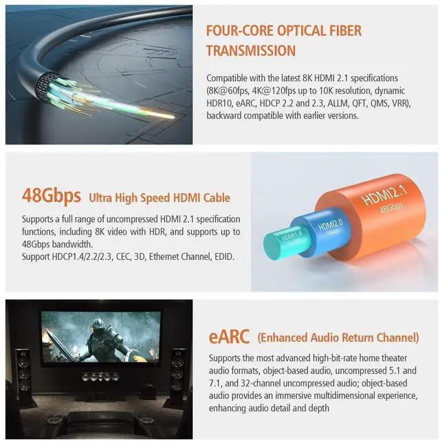 Responsive After-Sales Support: Our team is committed to providing exceptional after-sales service. If you encounter any issues with your 8K Fiber HDMI cable, we will resolve the issues quickly to ensure your complete satisfaction
