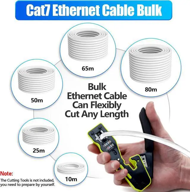 Can be Cut into Any Length & Free RJ45 Connectors: This cat 7 ethernet cable bulk are not limited by fixed length and can be cut into any length according to different scene requirements. You have the flexibility to cut the length you want without being limited to the length options offered by the market. In addition, we will provide you with some RJ45 connectors for free, so you don't have to purchase additional connectors yourself, which avoids the trouble of buying mismatched connectors and is very cost-effective.