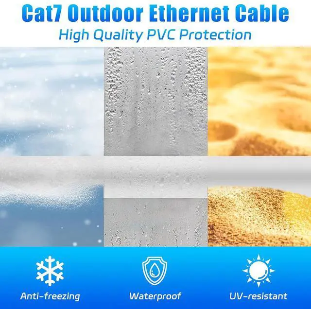 Support for Outdoor Use & Direct Burial Rated: The Soibke Cat 7 Ethernet cable is made of sturdy and durable high-quality PVC material, which has good waterproof, corrosion resistance, and UV resistance. These characteristics make it not afraid of direct sunlight and other harsh environments, and suitable for outdoor wiring. As a directly buried ethernet cable, it can be buried underground without conduits or other auxiliary equipment, with simple operation and avoiding problems such as unsightly wiring caused by ground wiring.