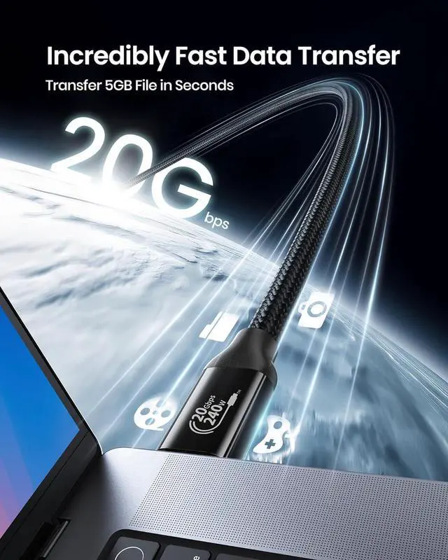 Blazing 20Gbps Data SyncMove 100GB files in 1 minute, 2x faster than USB 3.2 cable. seamless sharing file and high-performance device connections. (Note: Both the cable and connected devices must support 20Gbps for optimal transfer speeds)