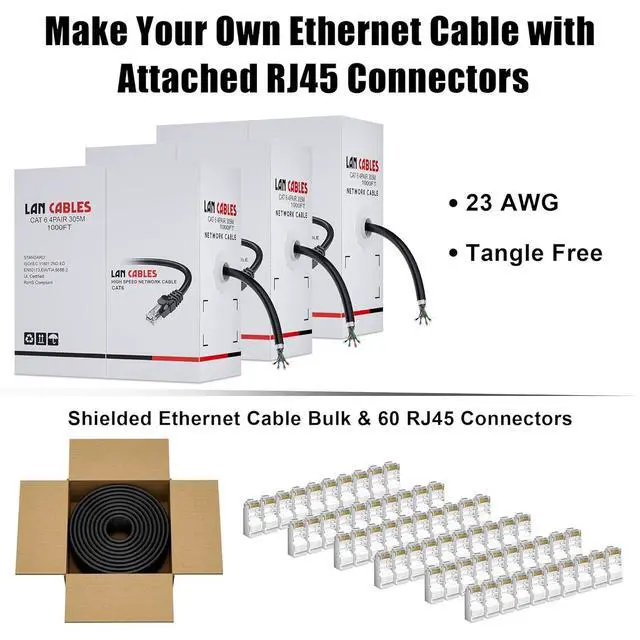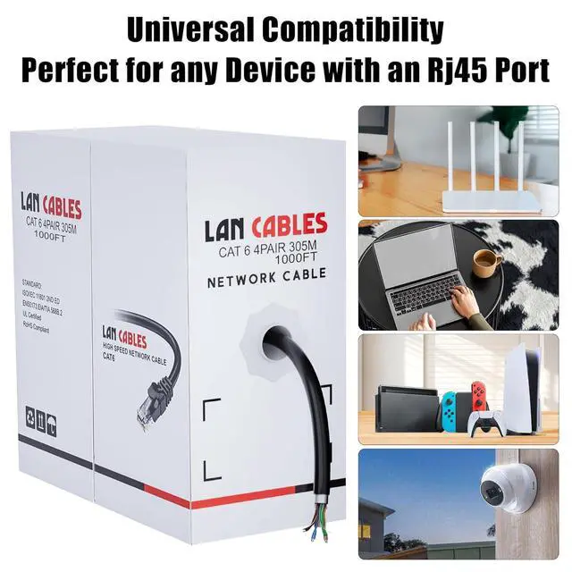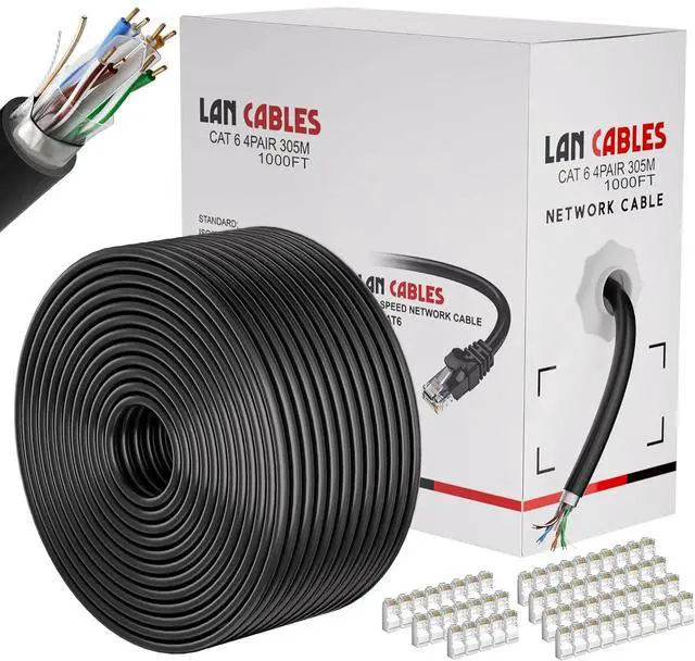 Can be Cut into Any Length & Free RJ45 Connectors: : Cat 6 ethernet cable bulk are not limited by fixed length and can be cut into any length according to different scene requirements. You have the flexibility to cut the length you want without being limited to the length options offered by the market, reducing unnecessary waste. In addition, we will provide you with some RJ45 connectors for free, so you don't have to purchase additional connectors yourself, which avoids the trouble of buying mismatched connectors and is very cost-effective.