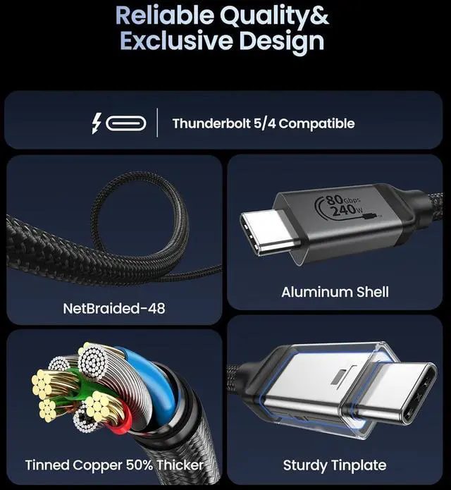 [80Gbps Ultra-Fast Data Transfer] It delivers bidirectional 80Gbps speedstransfer 6GB files in 1 second for unmatched efficiency. Fully compatible with Thunderbolt 5 and USB4 standards, ensuring zero signal loss of connection during high-performance tasks.