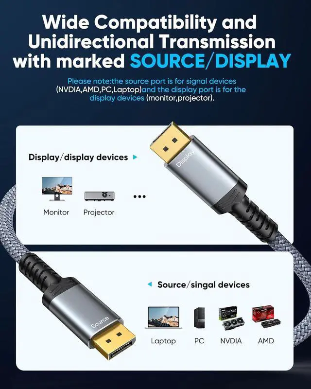 Universal Compatibility: The DisplayPort cable is compatible with all graphics cards and monitors with DisplayPort ports; It supports DP, DP++, and DisplayPort++; Avoid using extensions or adapters, as signal conversion may reduce performance