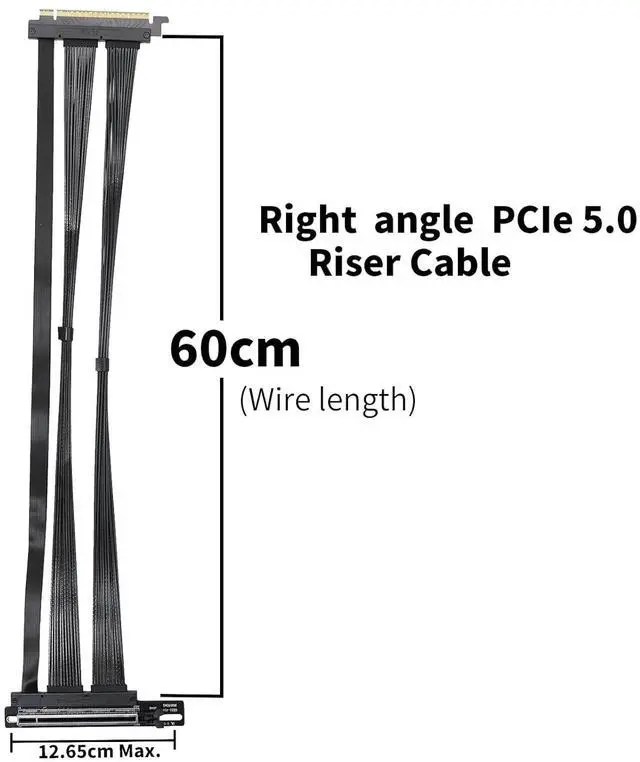 1) This PCIE GEN5 riser cable solution was originally developed to verify the GEN5 GPU, FPGA, acceleration card and RAID card development; on some specific system, this riser cable can support GEN5 data transmission with 1.0 meter length.