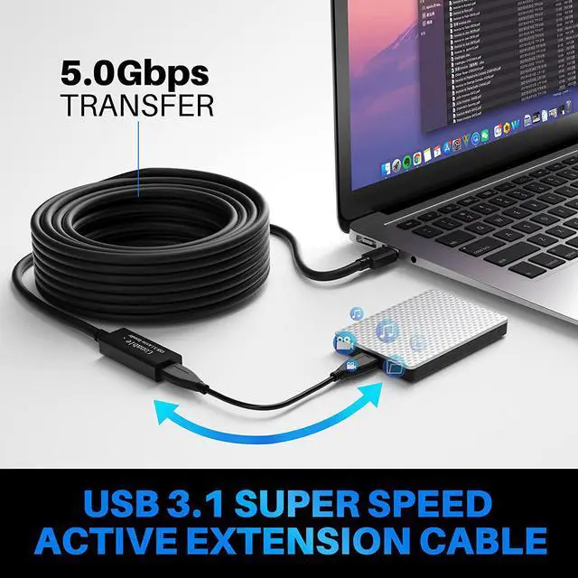 5Gbps Stable Data Transfer: The maximum data transmission speed of this USB active repeater cable is up to 5Gbps, 10X faster than USB 2.0 cable. Our cable has 2 extended chipsets signal booster to ensure uninterrupted signal transmission and stable speed when USB devices are used on this longer cable than other USB extension cable.