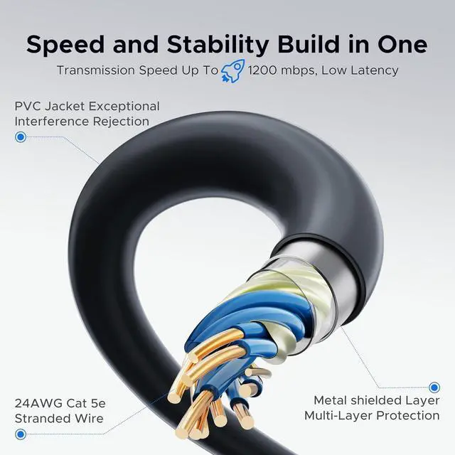 [OEM Standards and Beyond] Crafted from 24AWG Cat 5e copper stranded wire and exceptional interference PVC jacket. Supports data transfer speed up to 2000mbps. Manufactured to meet original Starlink standards and remains durable and flexible even after prolonged use. Spares your trouble of constantly changing cables.