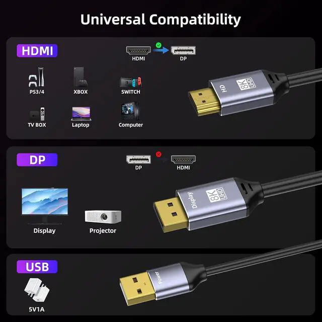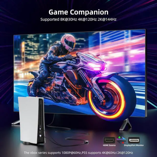 Whether connecting an HDMI-equipped game console to a DisplayPort gaming monitor for an immersive gameplay or linking an HDMI device to an 8K DisplayPort projector for ultra-high-definition movies, it delivers exquisite textures and rich colors.