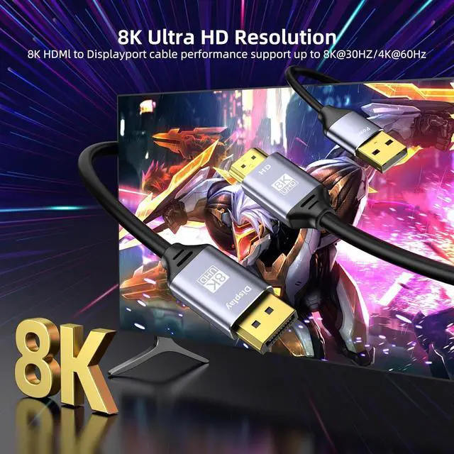 8K@30Hz / 4K@120Hz HDMI to Displayport Cable