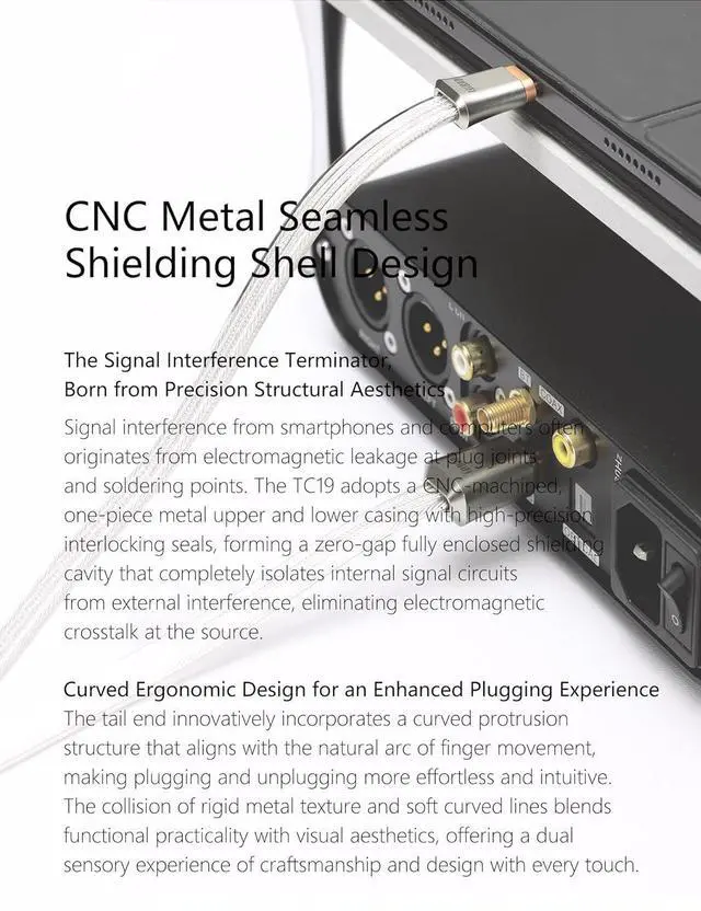 The TC19 adopts a CNC-machined, one-piece metal upper and lower casing with high-precision interlocking seals, forming a zero-gap fully enclosed shielding cavity that completely isolates internal signal circuits from external interference, eliminating electromagnetic crosstalk at the source.