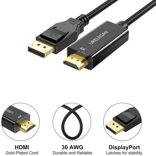 Multi-functional Use: 4K DP to HDMI Cables Supports Extended or Mirrored mode; Compatible resolusions up to 3840x2160@30Hz, 1920x1080@60Hz(1080P Full HD), flawless audio pass-thru for uncompressed digital 7.1, 5.1 or 2 channels.