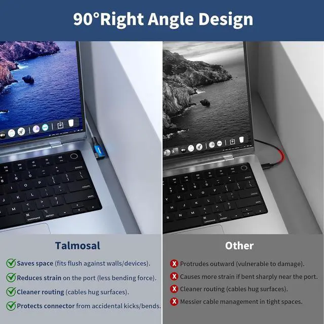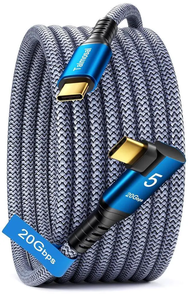 20Gbps Data Transfer: The transmission rate of 240W for Talmosal Thunderbolt 5 cable right angle 15ft is up to 20Gbps. 4x faster than standard USB 3.0. NOTE: Only applicable for devices that support 20Gbps, if you need 20Gbps speed.