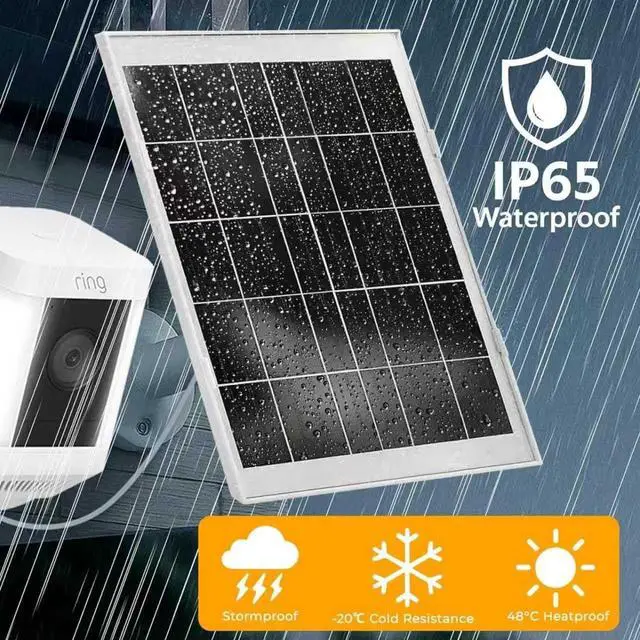 1.Continuous Power SupplyEnsure your Ring spotlight cam battery and Ring stick up Cam (Pro), Ring spotlight cam Plus/Pro power never run out of battery with this specially designed Ring solar panel. Experience uninterrupted surveillance with constant, eco-friendly power supply under strong sunlight.