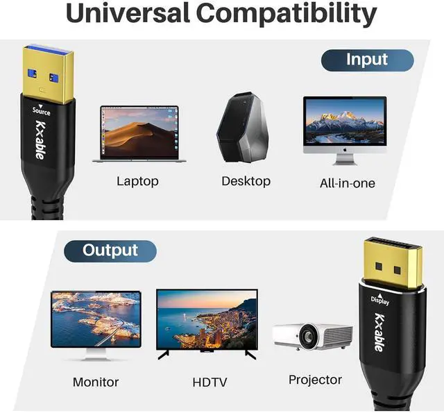 Real 4K OutputThe USB 3.0 to DP 4K display adapter supports a resolution of 3840x2160@30Hz, which can extend your computer's graphics/video content to a projector, HDTV or monitor. Whether for work, the stock market, gaming or meetings, this adapter can be very helpful. It is plug and play, supports mirrored display mode and extended display mode, and can be set according to your needs.