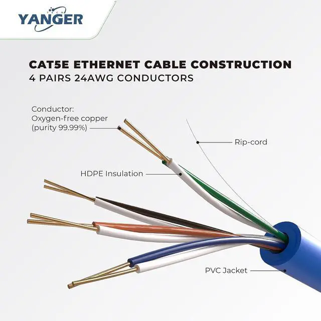 Compatible with PoE++ Devices - The pure copper cores ensure excellent conductivity, minimal signal loss, and reduced heat generation compared to copper-clad aluminum (CCA) alternatives. Ideal for long-distance installations with stable performance for PoE devices like IP cameras, VoIP phones, mesh routers, and Wi-Fi access points. Seamless upgrade from older CAT5 systems.