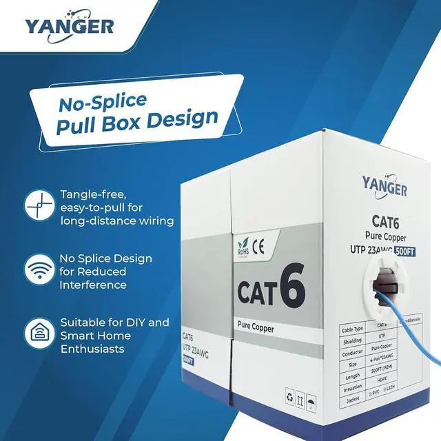 Easy-Pull Box for Efficient Installation - Designed for quick and hassle-free deployment, the easy-pull box allows for straightforward pulling, cutting, and connecting, reducing installation time by up to 50%. 500ft/1000ft bulk cables ideal for whole-home wiring (up to 3,000 sq.ft. homes) or contractor projects.