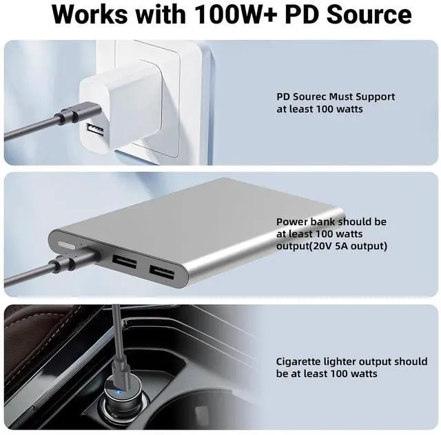Use a 100W PD power bank with the Starlink USB C Power Cable to ensure a stable power supply for your Starlink Mini. For optimal performance, choose a power bank with at least 100W output (20V 5A). Note: The power bank must support the PD (Power Delivery) protocol.