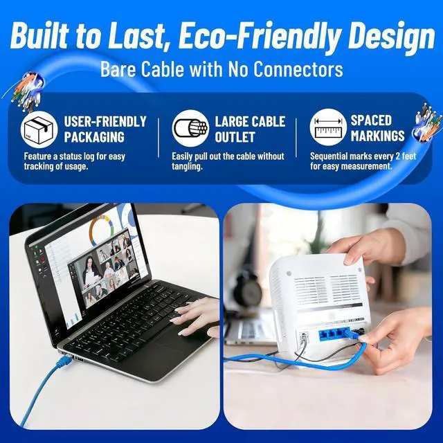 [EASY TO USE] Every cat6 cable features clear length markings every 2 feet for easy measurement and planning. This cable is ideal for indoor use in homes, offices, or commercial buildings