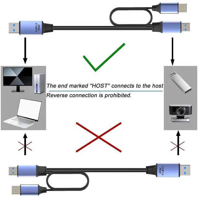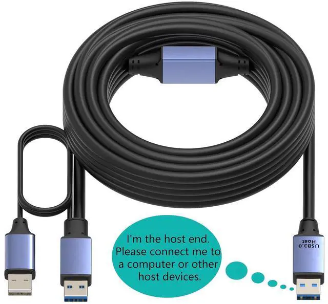 1.For cables longer than 15 feet+, The end labeled "HOST" connects to active devices such as computers.