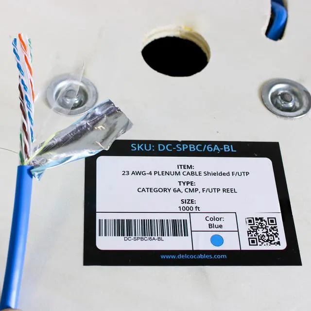 Upgrade your network infrastructure with Cat6A Plenum Shielded (F/UTP) Cable, designed for high-performance Ethernet and maximum safety in commercial and residential installations. This 1000ft bulk cable comes on a wooden reel for easy handling and professional deployment.