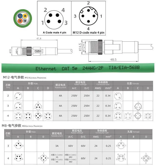 M8 and M12 cable is widely utilized in a diverse range of industrial and automation applications, including actuators, IO links, sensors (such as proximity, photoelectric, ultrasonic, and temperature sensors), and network communication systems. It supports various industrial protocols like Fieldbus, PROFINET, and EtherCAT. Commonly employed in robotics object detection navigation, automotive uses, machine tooling, computers, PLCs, and process control systems