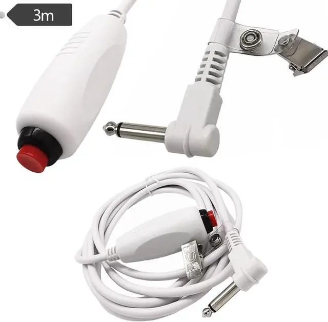 Cable length 3 meters Standard 6.35mm mono plug Comes with a clip for placing on the bed/clothing Universal model, compatible with most commercial nurse call systems Waterproof design, carved handle