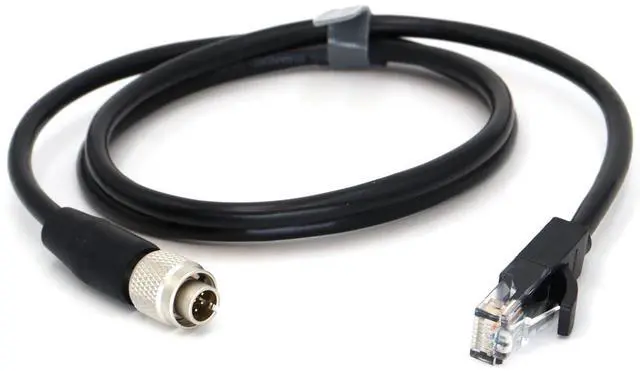 The cable translates the communication between a camera and a RCP to Ethernet-language. Plug A: MXR-8P-8P 8PIN Male Connector; Plug B: RJ45 Male Connector.