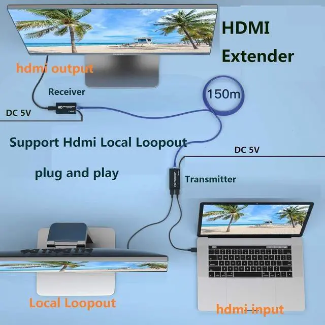 hdmi local out (LOOPOUT) This hdmi over ethernet extender 500Ft HDMI Extender has an HDMI output port on the transmitter side that can be connected to a local monitor for monitoring and control, meeting your need for an additional screen extension.